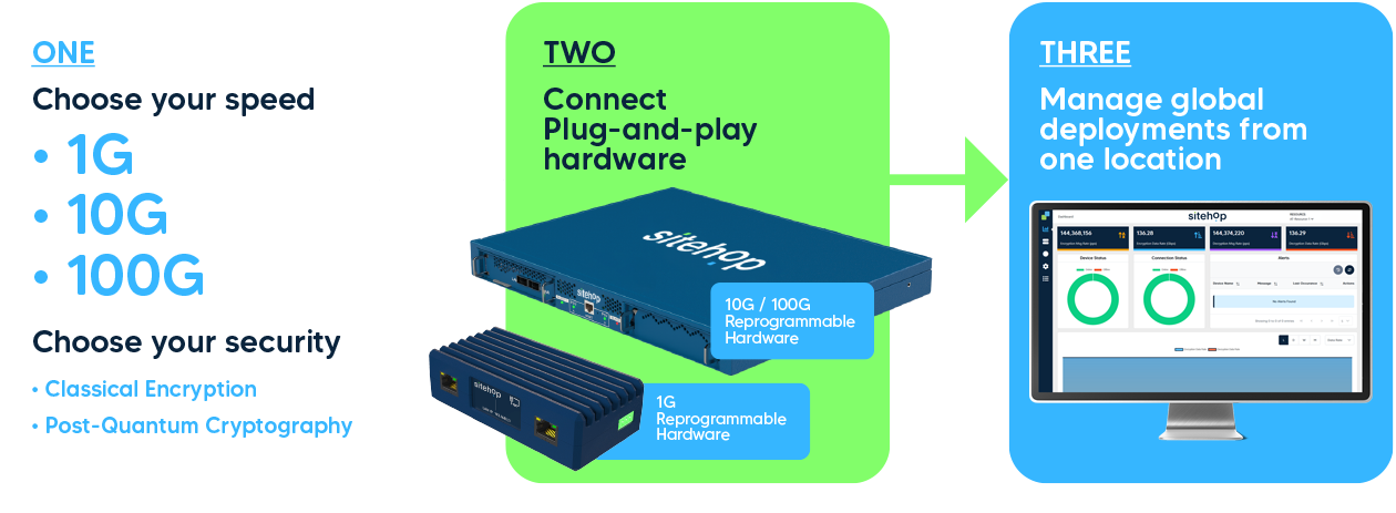 Sitehop’s SAFE Series is more than just high-speed encryption—it’s a modular platform built for agility, visibility, and performance at scale. From core to edge, Sitehop gives you the tools to simplify, secure, scale, and move data at speed with confidence. Explore the complete SAFE ecosystem.