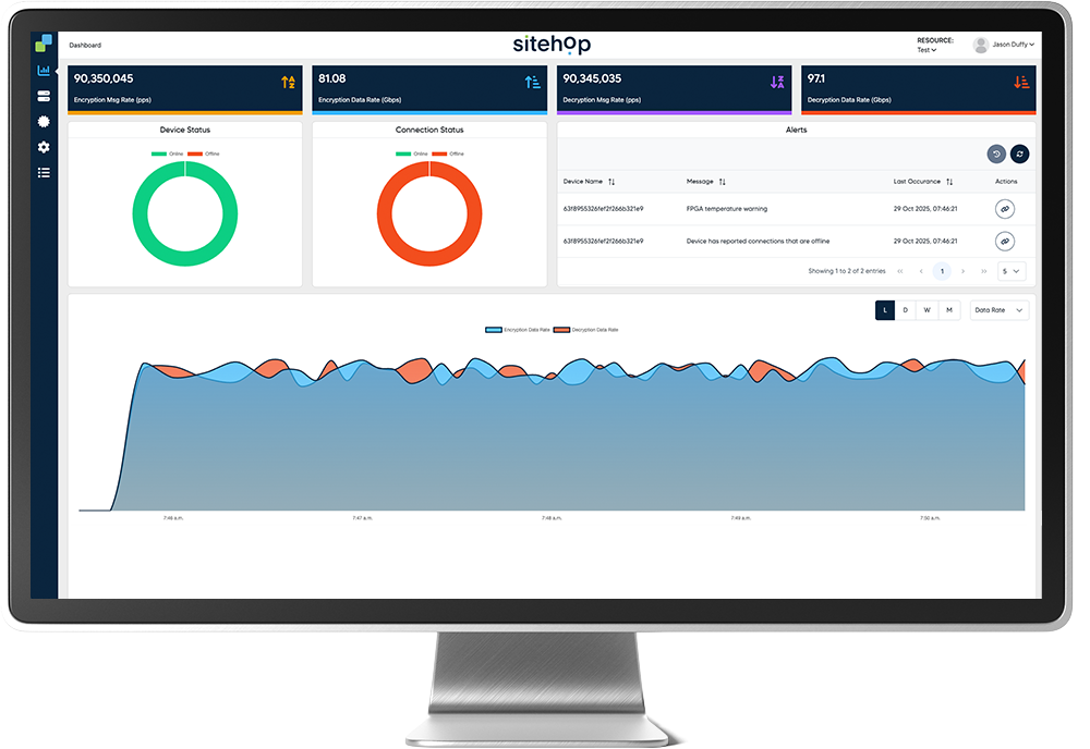 Cybersecurity is evolving fast with AI and quantum threats; traditional encryption lags behind. Sitehop’s FPGA-powered, quantum-ready solutions deliver unmatched sub-microsecond latency, securing data instantly and proactively—so your network stays protected before threats even appear.